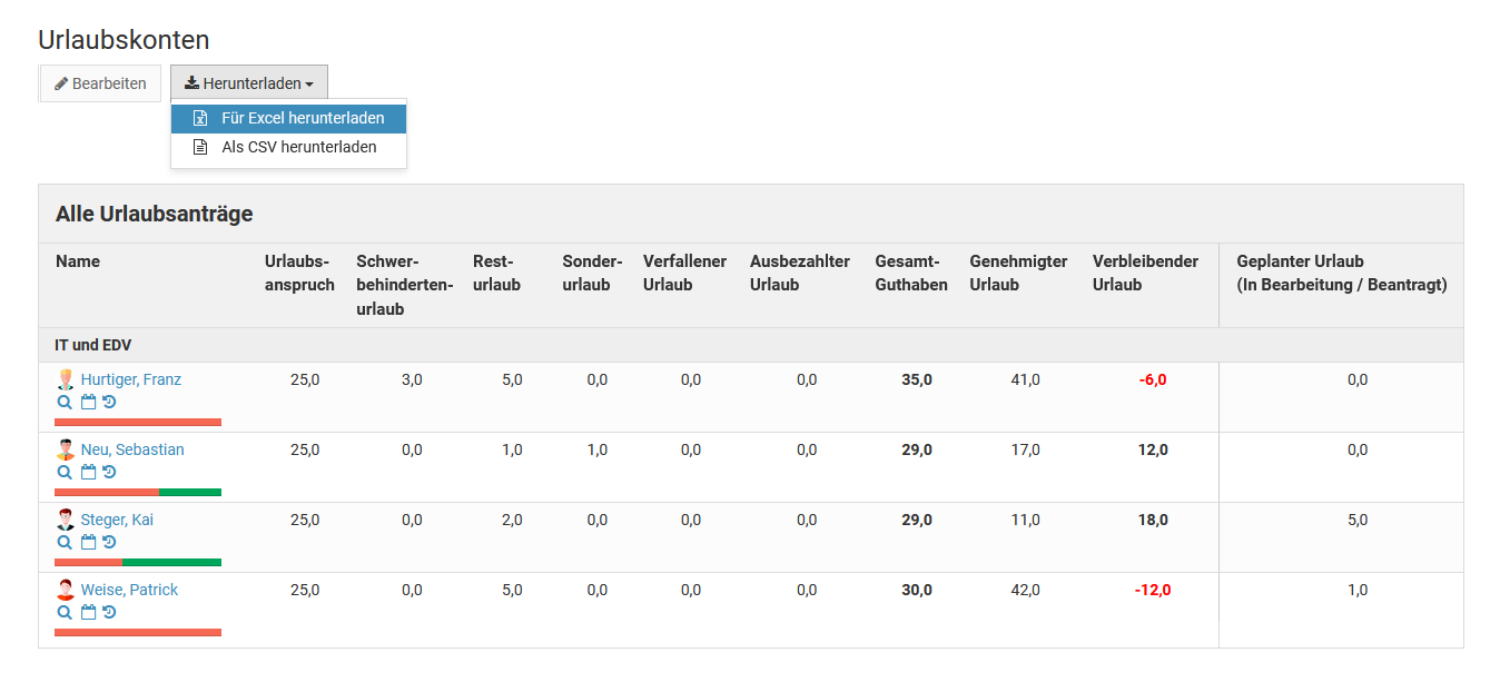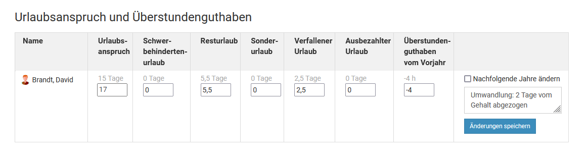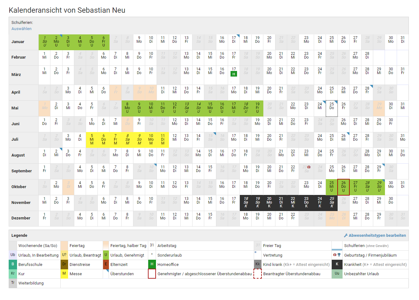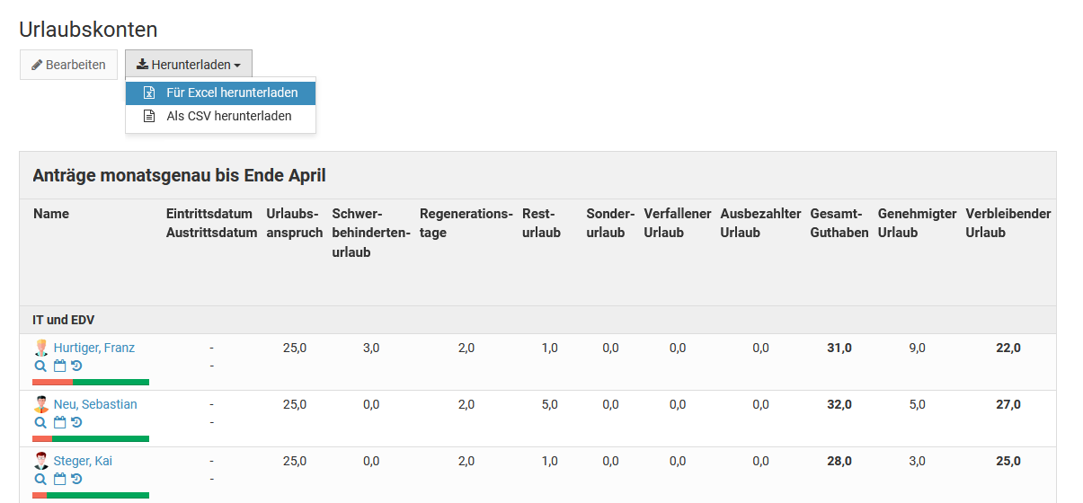 Für das Bearbeiten von Abwesenheitseinträgen gilt das gleiche wie beim Bearbeiten von Urlaubsanträgen: