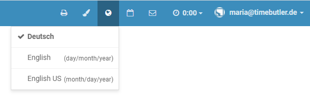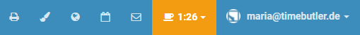 Auf jeder Seite besteht die Möglichkeit, die Seite auszudrucken. Um eine Seite auszudrucken, können Sie die Druckfunktion Ihres Browsers benutzen oder Sie klicken auf das Symbol mit dem Drucker oben auf allen Seiten im Timebutler.