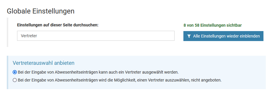 Bei der Eingabe einer Abwesenheit kann auch ein Vertreter ausgewählt werden. Es ist hier nicht möglich, mehrere Vertreter auszuwählen, sondern es kann nur ein Vertreter gewählt werden.