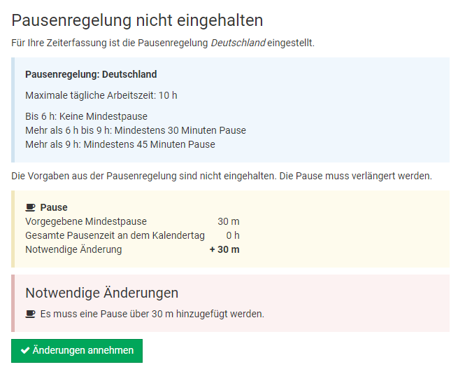 Wenn beispielsweise ein Mitarbeiter einen 2-wöchigen Urlaub eingetragen hat und in der letzten Woche erkrankt, dann gibt der Admin nur de 1-wöchigen Krankheitseintrag ein. Timebutler erkennt, dass sich der Krankheitseintrag mit dem Urlaubsantrag überschneidet und bietet an, den bestehenden Urlaubsantrag automatisch zu kürzen.